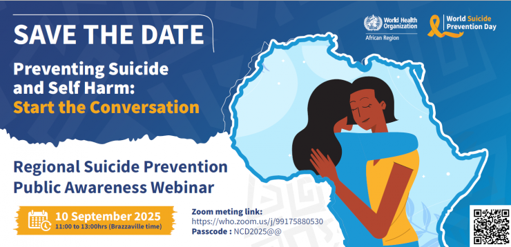 Le Bureau régional de l’OMS pour l’Afrique organise un webinaire régional hybride de sensibilisation du public sur la prévention du suicide, intitulé « Prévenir le suicide et l’automutilation en Afrique : lancer le débat », le 10 septembre 2025.